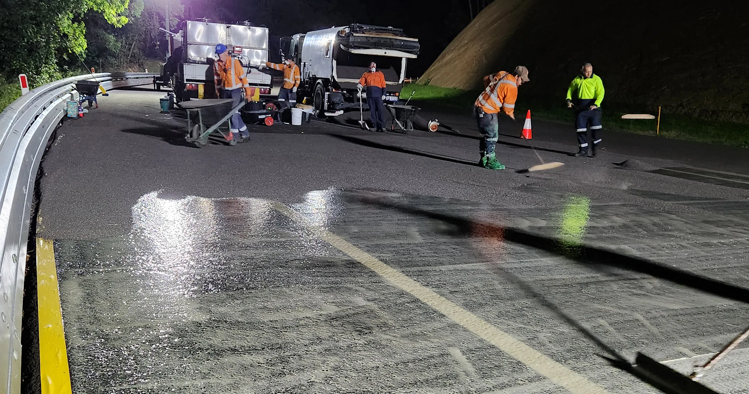 GRMS also holds the highest level of Transport and Main Roads (TMR) certification for high friction surfacing — Level 3 — in Queensland, making us one of only two contractors in the state with this level of qualification. This certification is not easily earned; it reflects extensive field experience and proven product performance, both of which must pass rigorous testing and evaluation. It stands as a clear demonstration of our capability to deliver high-quality, safety-critical surfacing in some of Australia’s most demanding road environments.